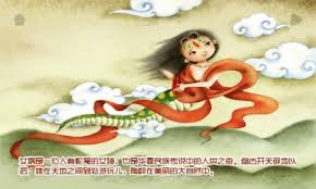 중국 신화에서는 **여와(女媧)**가 황하 주변에서 인간을 만들고, 하늘이 무너졌을 때 오색 돌로 하늘을 수리했다는 이야기가 전해집니다. 그녀는 뱀의 몸을 지닌 여신으로, 황하의 흐름이 그녀의 몸통과 같다는 표현도 있습니다.