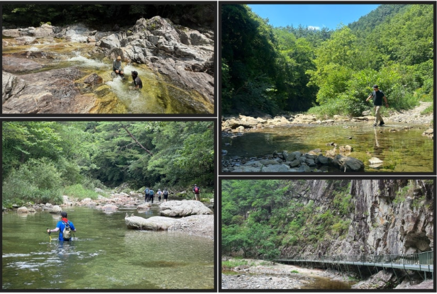 - 계곡 트레킹 중에는 물놀이에 집중하기보다 주변을 관찰하면서 이동하세요.