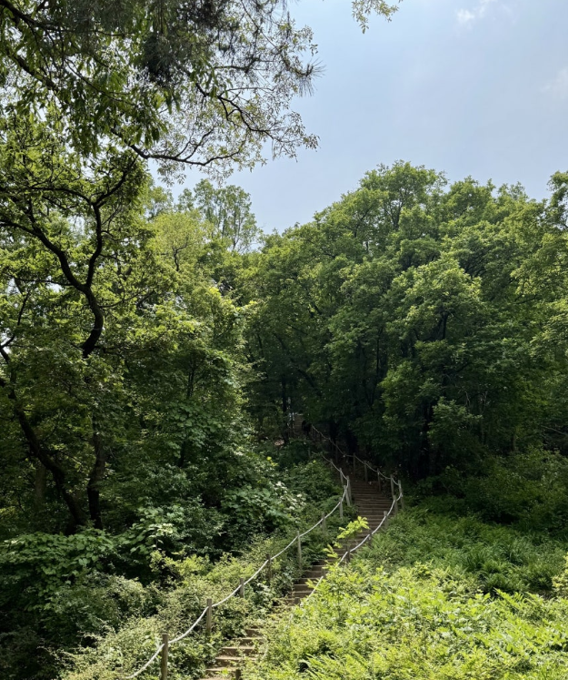 올라갈수록 시야가 트인다. 회색 도심을 벗어나 초록빛이 가득한 풍경이 눈을 감싼다. 짙은 녹음, 햇살에 반짝이는 잎사귀, 멀리 보이는 아파트 단지 위로 피어오른 안개. 그 모든 것이 경계 없이 어우러진다. 청계산의 푸르름은 단순한 색이 아니다. 그것은 마음을 씻어주는 하나의 감각이다.