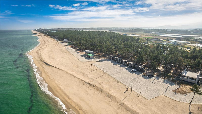 - 해수욕장 인접, 차량 진입 좋은 오토캠핑형으로 가족/차량 캠핑족에게 적합.