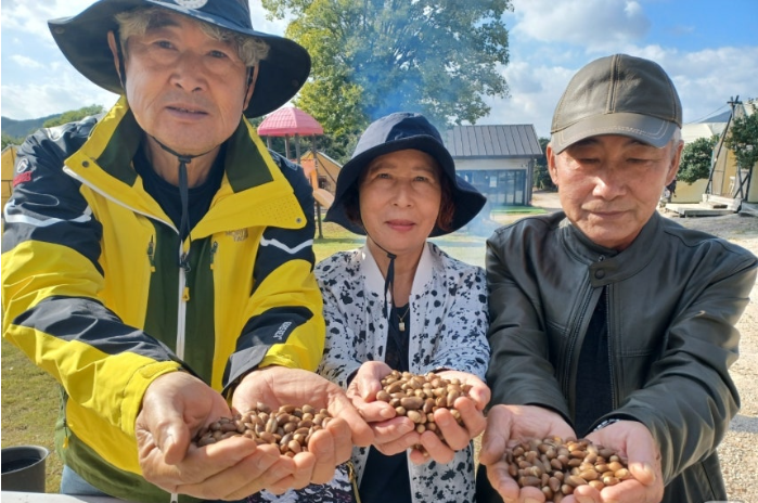“직접 딴 구실잣밤나무 열매 구워 먹으니 맛있어요”