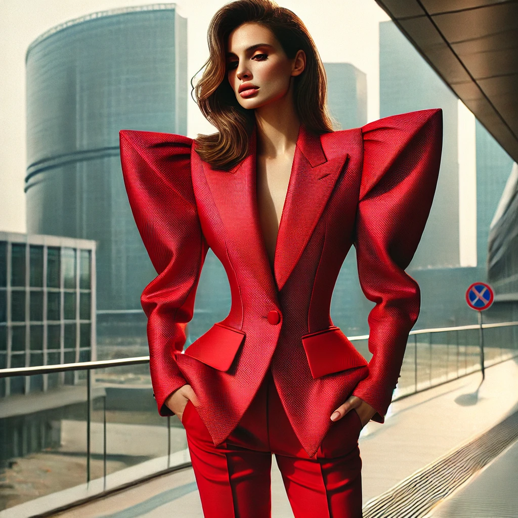 **파워 숄더 룩(Power Shoulder Look)**은 과장된 어깨선이 특징인 패션 스타일로, 강렬하고 자신감 있는 이미지를 연출하는 스타일입니다.