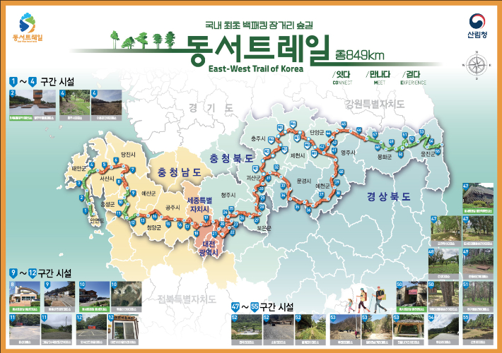 - 전체 849 km를 한꺼번에 걷는 건 현실적으로 상당한 체력·시간·예산이 든다. 따라서 시범 운영 중인 구간 중심으로 나누어 걷는 것이 현명하다. 국립산림품종관리센터+1