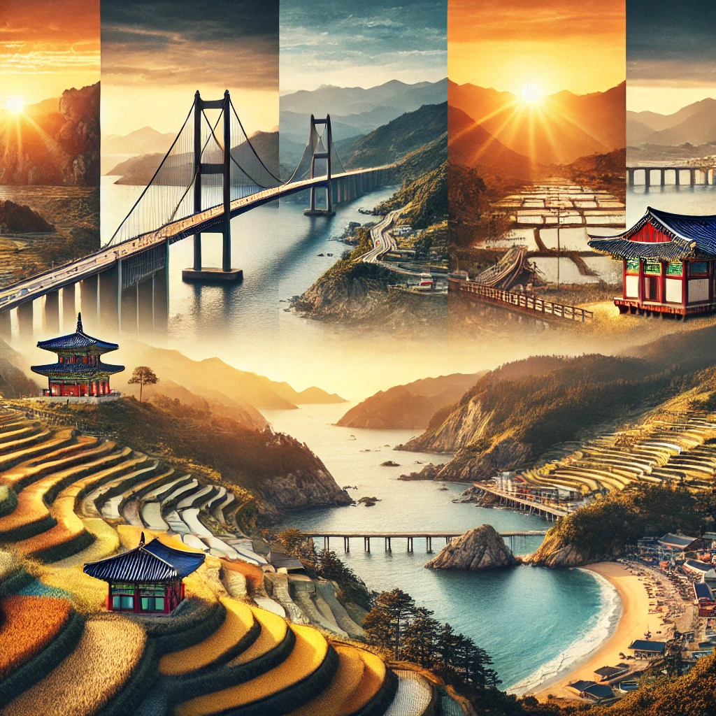 - 특징: 총연장 3.4km에 이르는 5개의 창선·삼천포대교는 세계 최초의 주탑 없는 현수교로, 아름다운 해상 교량입니다.