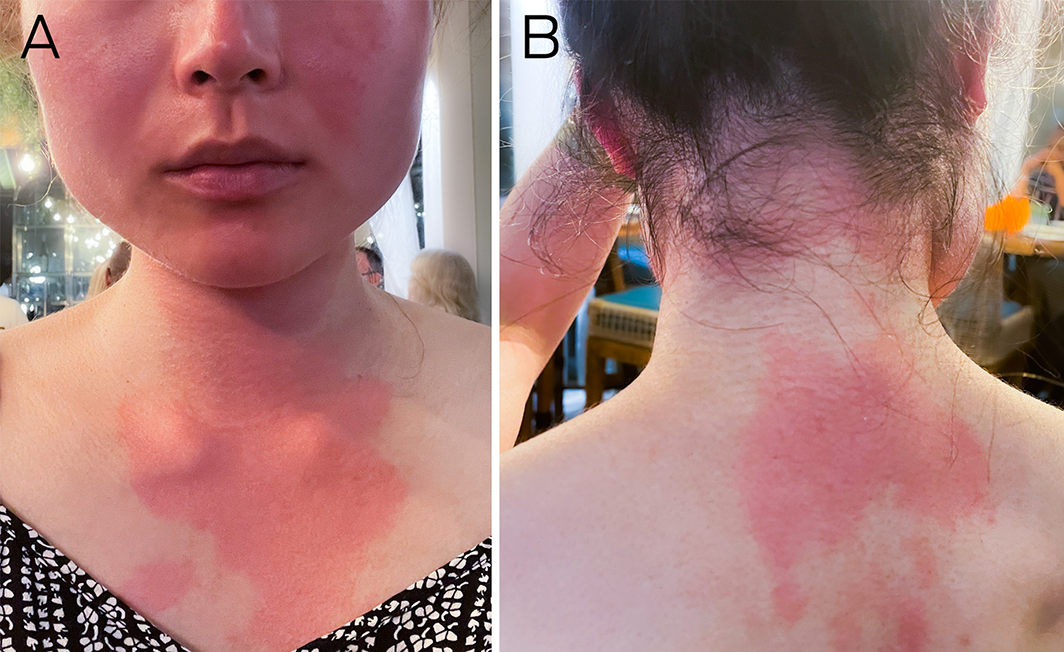 - 얼굴·가슴·목이 갑자기 빨갛게 달아오름