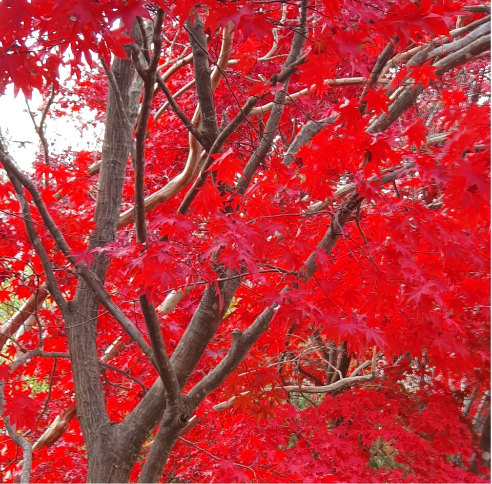 “붉게 물든 나무 사이로 걷는 나, 가을의 풍경 속에 나를 살짝 놓아본다.”