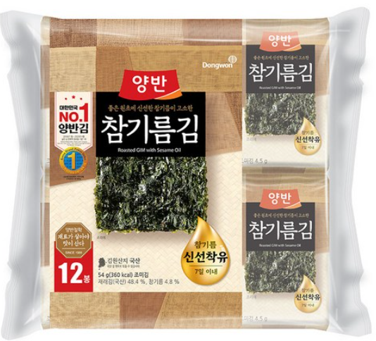 양반 참기름 김, 4.5g, 12개 - 도시락김 | 쿠팡