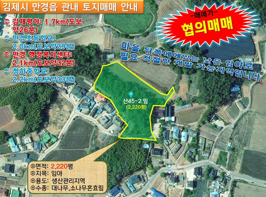 김제시 만경읍 송상리 야산 매매 – 전원주택지로 딱! 곰솔나무 숲과 함께하는 청정 힐링 라이프