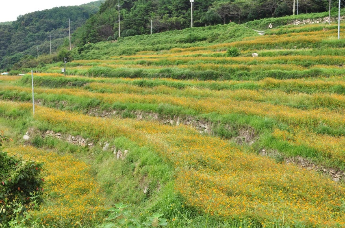 🌿 남해 다랑이논(다랭이논) — 코스모스 물결이 출렁이는 가을 힐링 명소