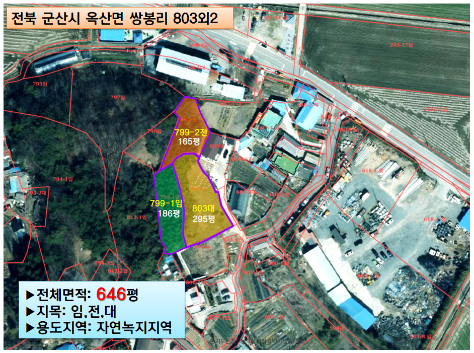 - 소재지 : 군산시 옥산면 쌍봉리 803번지 외 2필지