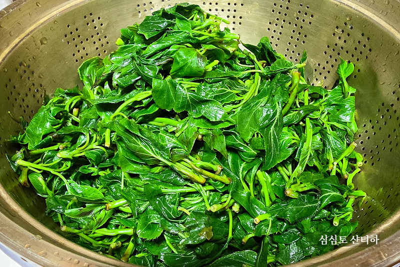 - 연한 순을 깨끗이 씻어 끓는 물에 살짝 데친 후 찬물에 헹굽니다.