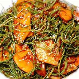 - 참나물 겉절이: 사과와 함께 무쳐 상큼한 맛이 일품인 요리입니다.