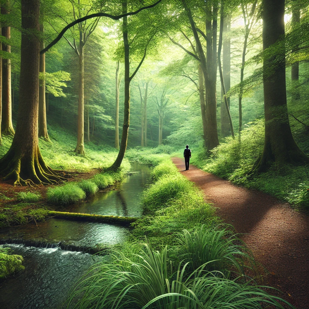 - 숲속에서 깊은 숨을 들이마시며 몸과 마음 정화