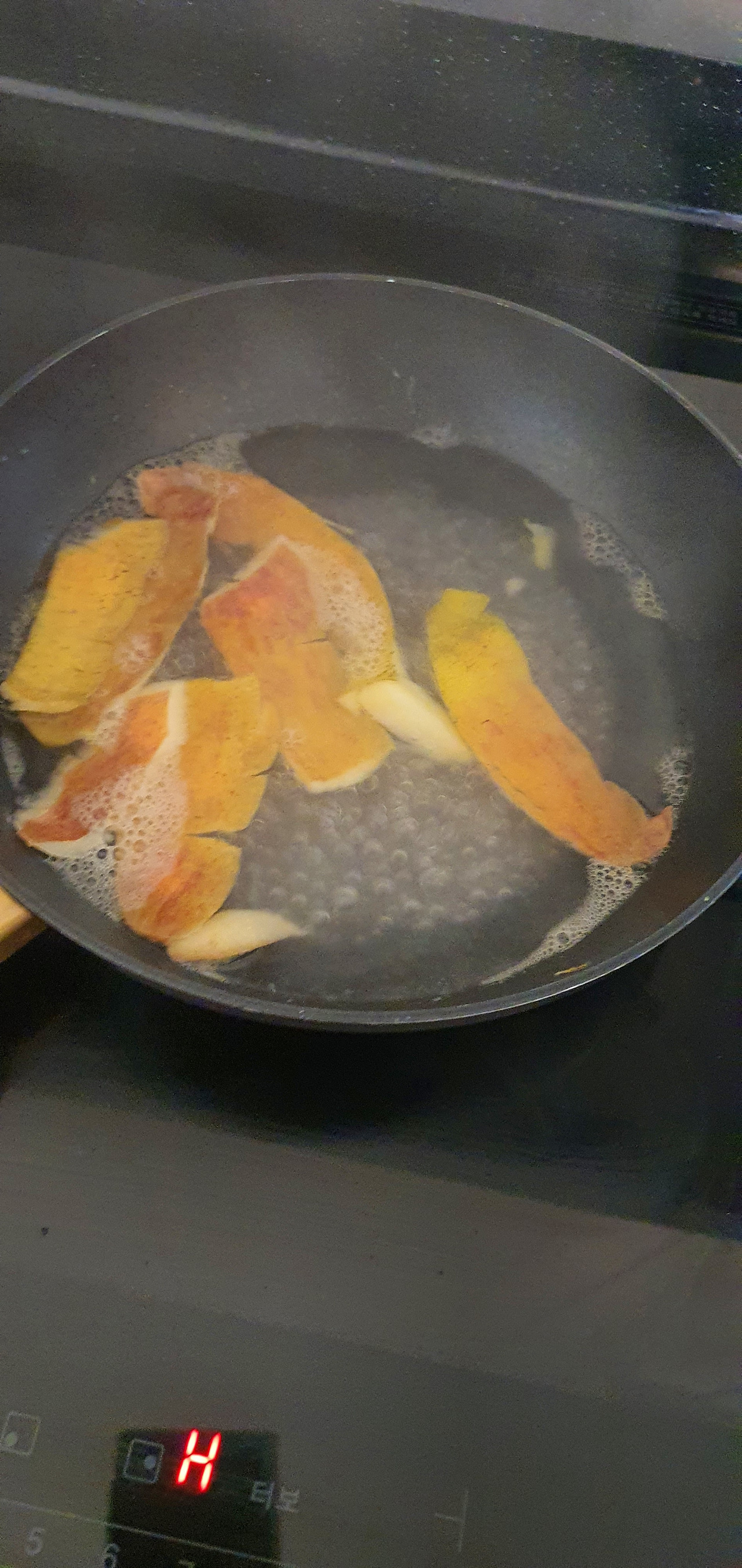 1️⃣ 탄 냄비에 사과 껍질 한 줌 넣기