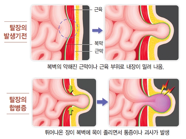 👉 장이나 지방이 밖으로 밀려 나오는 상태