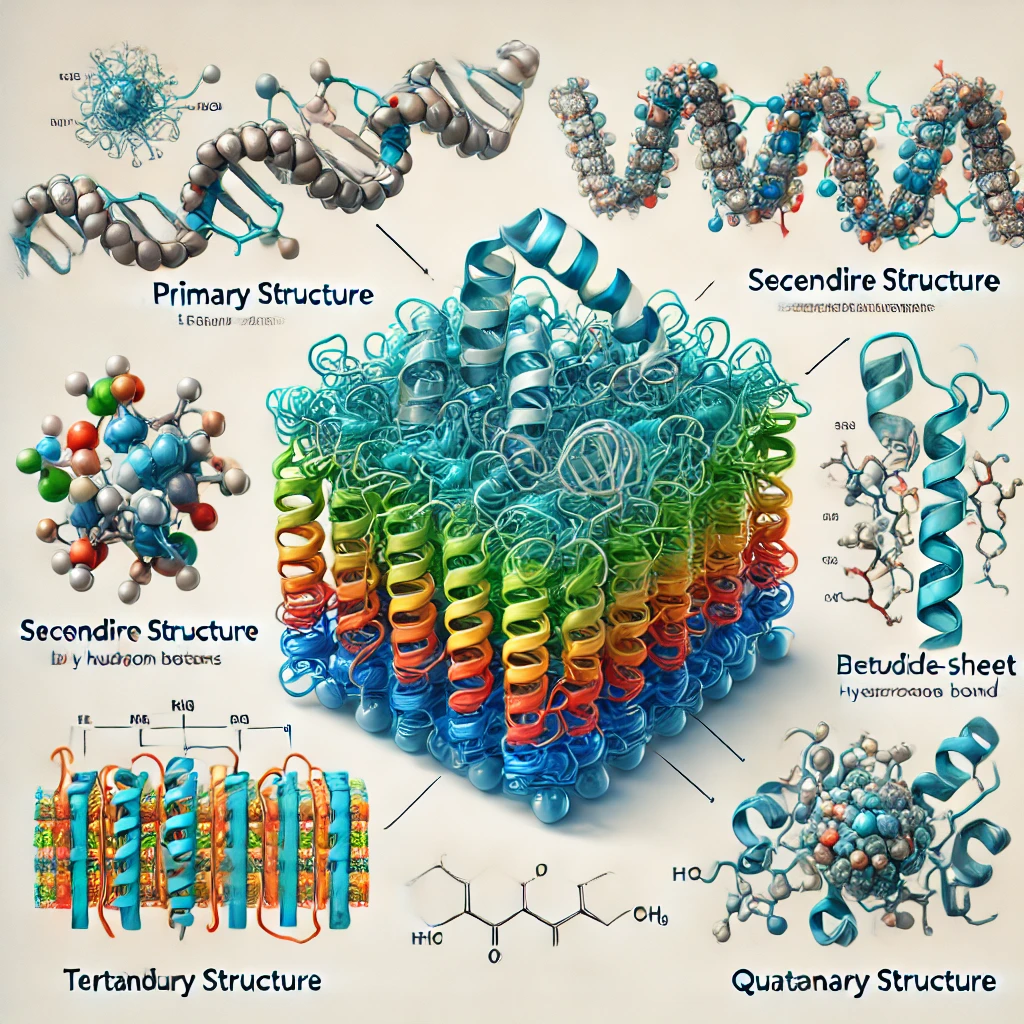단백질은 **아미노산(Amino Acid)**이 결합하여 이루어진 생체 고분자로, 구조에 따라 기능이 결정됩니다. 단백질 구조는 크게 4가지 단계로 나뉩니다.