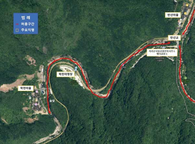 | 금지사항 | 목욕, 취사, 야영, 물고기 잡기, 흙탕물 유발 |