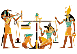 - 신전에 모여드는 사람들이 **태양신 라(Ra)**에게 제사를 지내는 모습