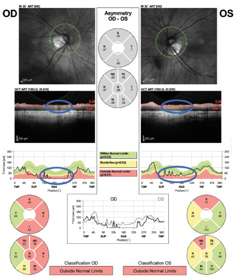- 안압 상승 또는 시신경 혈류 이상으로 시신경 손상