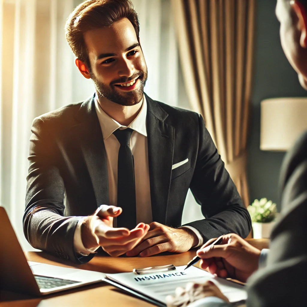 보험 설계사가 고객과 상담하는 전문적이고 신뢰감 있는 이미지를 제작했습니다. 😊