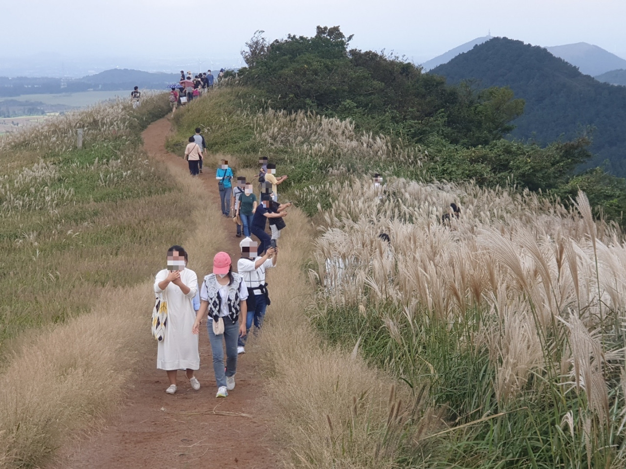 오름 초입에서부터 정상까지 약 20~30분이면 오를 수 있어 남녀노소 누구나 부담 없이 즐길 수 있습니다. 산책로를 따라 올라가면 제주의 푸른 들판과 멀리 보이는 한라산 능선이 한눈에 펼쳐집니다. 곳곳에 포토존이 마련돼 있어 인생샷 명소로도 사랑받고 있습니다.
