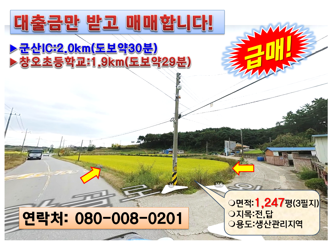 군산시 성산면 토지매매 안내 - 대출금만 인수하고 내 땅 만들기!