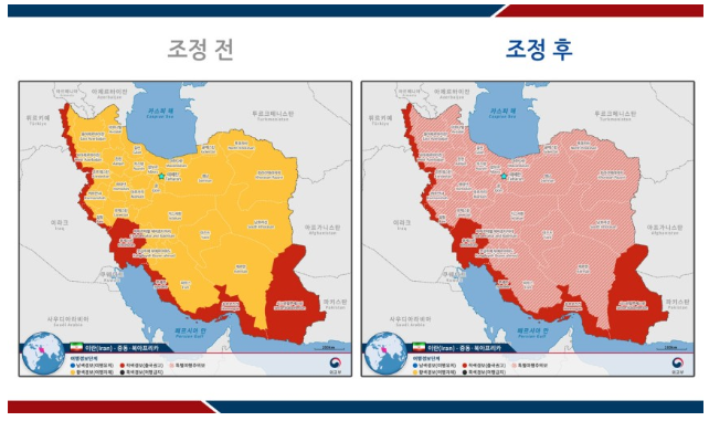 - 특별여행주의보(2.5단계): 이스라엘·이란 여타 지역