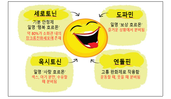 - 엔도르핀: 스트레스 ↓, 안정감 ↑