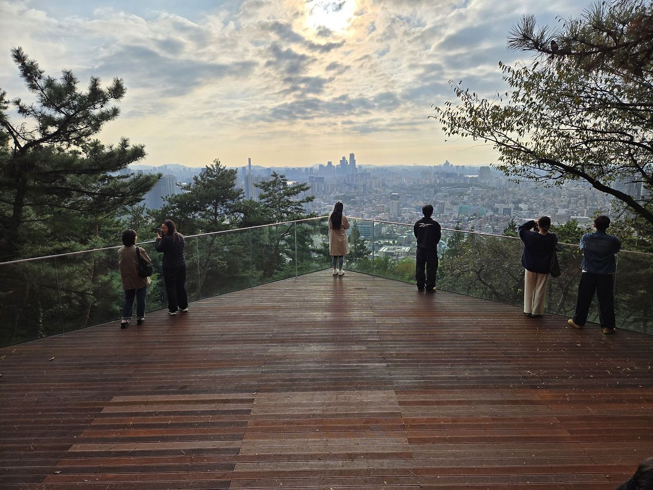 유리 펜스를 활용해 ‘공중에 떠 있는 듯’한 개방감을 주는 포토존. 도심과 노을이 어우러지는 풍경 덕분에 사진 찍기 좋은 장소로 입소문 나고 있습니다. 다음+1