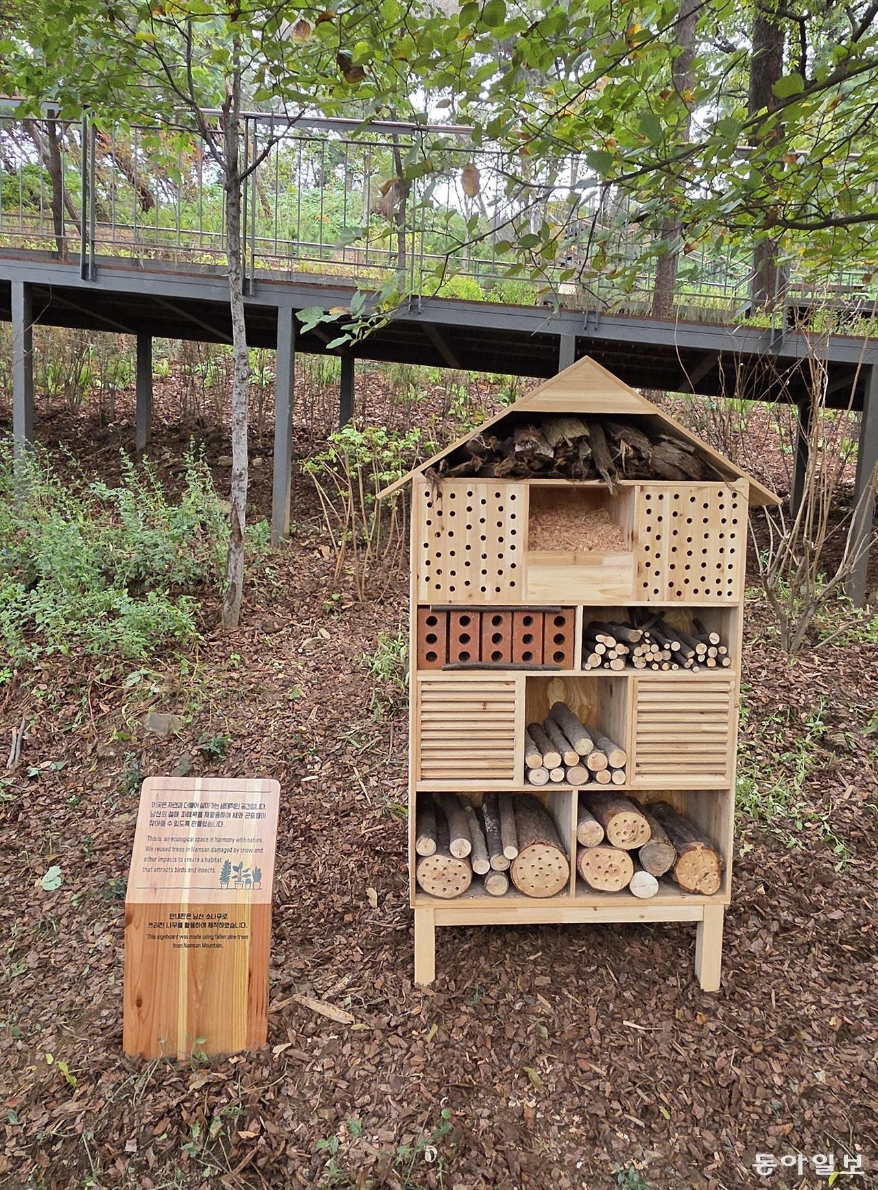 길을 조성할 때 나무 한 그루 베지 않도록 설계했고, 숲길 하부에 야생동물 이동통로를 확보했어요. 거기다 ‘곤충호텔’까지 설치되어 생태 공간으로서의 가치도 꽤 높습니다. 다음+1