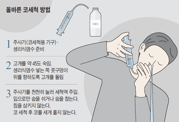 핵심은 바로 코(비강)를 씻어내는 것입니다.