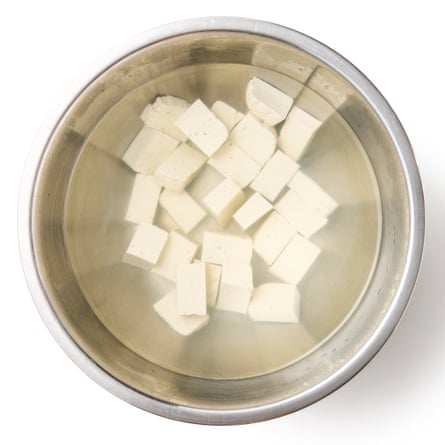 ② 밀폐용기에 두부가 잠기게 담기