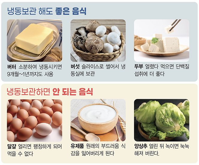 - “얼렸다가 데워 먹으면 OK”인 식품도 있고, “냉동하면 품질이 확 떨어져서 별로다”인 식품도 있어요.
