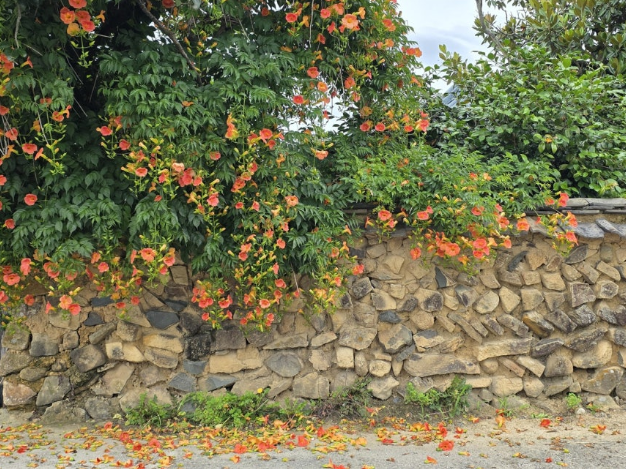 - 주황빛 능소화가 돌담을 따라 활짝 피어 있는 모습은 마치 여름 수채화를 보는 듯한 풍경입니다 korean.visitkorea.or.kr+10picks.my+10ohmynews.com+10.